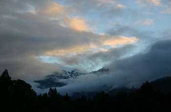 Plötzlich aber mußte ich das Gespräch abrupt unterbrechen, da jetzt die Abendsonne sich in den Bergen mit einem herrlichen Farbenspiel verabschiedete. So rannte ich ins Zelt, holte meine Kamera nebst Zubehör und Stativ, um Fotos zu machen. Dabei gab es einen kleinen Auflauf und wiederum Gespräche mit den umliegenden Campern. Zum Abschluß des Abends unterhielten wir uns noch mit einem jungen schwäbischen Pärchen, daß neben uns zeltete. Nicht lange danach zog es uns in unsere Zelte, obwohl der Tag heute nicht anstrengend war, schlief ich sofort ein.