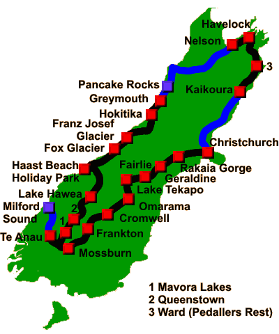 Reiseroute Neuseeland 2004