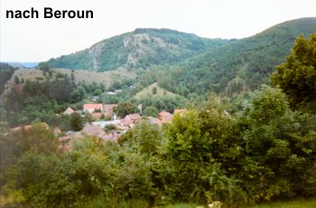 Jetzt fuhren wir im Tal der Berounka entlang, die uns, mit kleinen Unterbrechungen, bis Prag begleiten sollte. Bei dem schönen Wetter und der guten Straße war es ein Vergnügen Rad zu fahren. So erreichten wir am Nachmittag auch unser Ziel, den Zeltplatz von Karlštejn. Die Ausstattung hatte sich seit unserem letzten Besuch nicht groß verändert, das heißt die sanitären Anlagen waren nicht berauschend, aber sauber und daß genügte uns vollkommen Wir hatten, die Zurufe aus der Rezeption ignorierend, erst einmal eine Besichtigungstour über den Zeltplatz gestartet. Nachdem wir alles gesehen hatten und da uns der Platz behagte, bezahlten wir für die Übernachtung und stellten das Zelt auf.